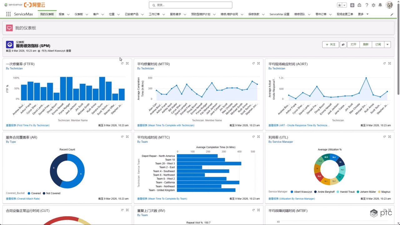 ServiceMax 不仅可以帮助您确保净利润,还可以衡量您的利润情况。ServiceMax 的预定义报告和预构建仪表板可衡量常见的现场服务指标,例如首次修复率、配售率、平均维修时间等。我们的高级分析仪表板提供有关服务成本、服务盈利率和合同配售率的宝贵数据见解。