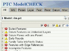 | ModelCHECK No more opening separate windows to check your model against company standards. ModelCHECK results have never been more interactive within Pro/ENGINEER Wildfire. |