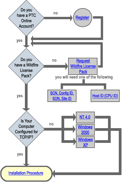 For installing Pro/ENGINEER Wildfire follow this chart.