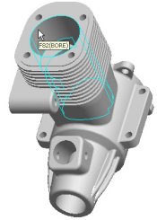 - Bewegen Sie den Mauszeiger über das Konstruktionselement BORE, und wählen Sie es, wie in der folgenden Abbildung gezeigt.