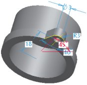 | Aufgabe 2-33. Erzeugen Sie ein Rotationsbemaßungsmuster von der Gruppe EXTRUDE_3. |