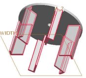 Mit der Musteroption Achse (Axis) können Sie Rotationsmuster von Konstruktionselementen oder Gruppen um eine gewählte Achse unabhängig von ihrem Bemaßungsschema erzeugen. Die Option Winkelausdehnung (Set Angular Extent) erspart Ihnen das Schreiben einer Beziehung vom Typ "Angle=360/P1" zum gleichmäßigen Verteilen der Musterelemente. |
