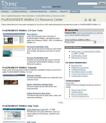 Pro/ENGINEER Wildfire 2.0 的使用者介面包括整合的 Web 瀏覽器和資料夾瀏覽器,可以方便您存取設計資訊和模型資料。Pro/ENGINEER Wildfire 的特徵工具利用操作介面,提供簡單而直覺的存取方式,讓您存取建立及編輯特徵的選項。