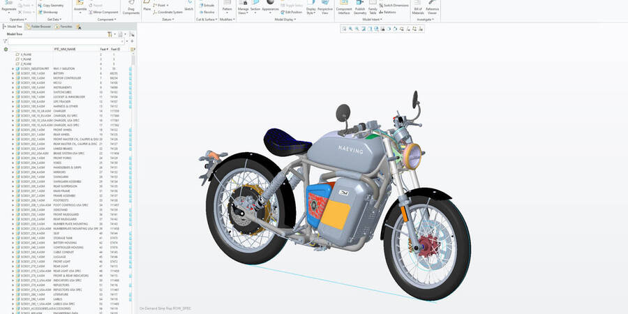 Durch die Integration von Konstruktion und Simulation in einem Softwarepaket konnte Maeving schneller iterieren und seinen Entwicklungsprozess schlank halten. Creo dient als Drehscheibe für das Design des RM1-Motorrads. Die PLM-Daten werden über Windchill verwaltet, was eine nahtlose Zusammenarbeit zwischen Maeving und seinen Partnern gewährleistet.