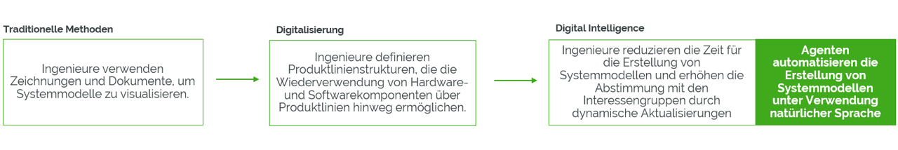 3. Product Line Engineering: KI-Agenten generieren dynamisch Systemmodelle auf der Grundlage von Beschreibungen in natürlicher Sprache (Automatisieren) und helfen Ingenieuren, Komponenten und Konfigurationen über verschiedene Produktlinien hinweg zu standardisieren, wenn Änderungen auftreten.