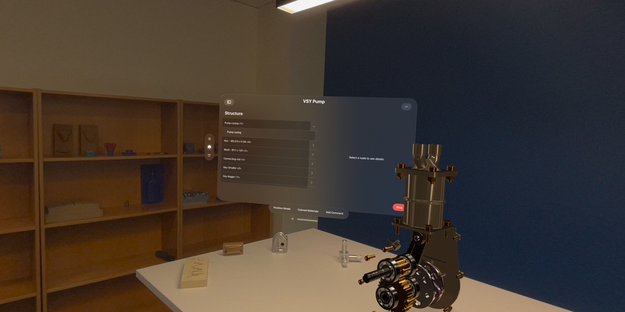 Die Überprüfung von Entwürfen fühlt sich mit Onshape Vision auf Apple Vision Pro natürlicher an als bei herkömmlichen Videokonferenzen. Kollegen an verschiedenen Standorten, die Apple Vision Pro verwenden, haben das Gefühl, sich im selben Raum zu befinden, während sie dasselbe Produktdesign visualisieren, damit interagieren und sich darin bewegen. Die einzigartige Cloud-native Architektur von Onshape nutzt eine einzige Datenquelle, sodass alle in Onshape Vision eingegebenen Kommentare auf allen Plattformen, einschließlich Mac, iPad und iPhone, in Onshape erfahren werden können. Ebenso sind alle Änderungen am CAD-Modell sofort in Onshape Vision zu erfahren.