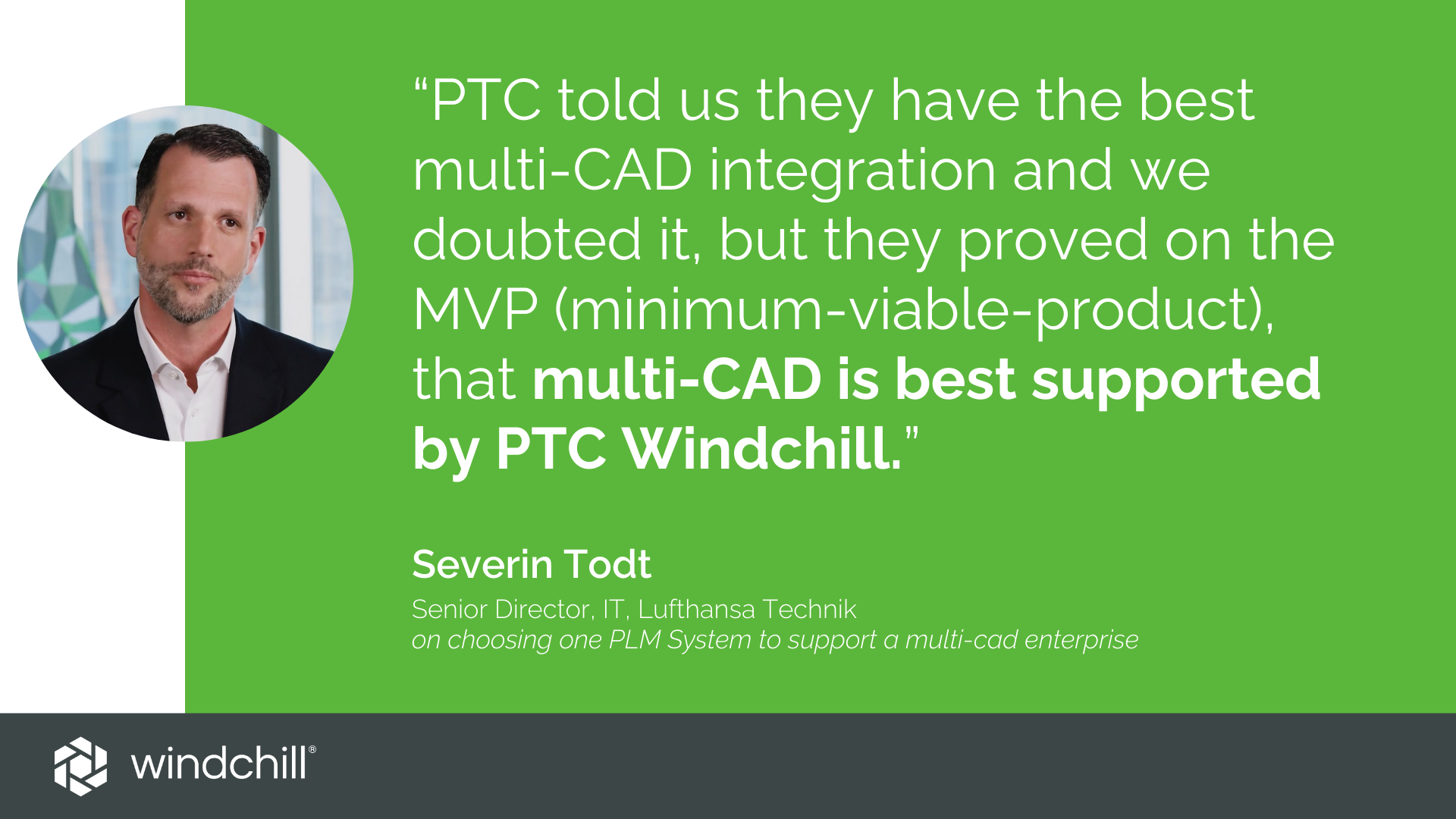 Als wir über eine PLM-Konsolidierung nachdachten, mussten wir uns entscheiden, welches PLM-System wir verwenden und mit welchem Unternehmen wir auf unserem Weg zu einem PLM-System zusammenarbeiten wollten. Aus dieser Entscheidung oder Herausforderung heraus entschieden wir uns für ein MVP (minimum-viable-product), um zu beweisen, dass die Unternehmen in der Lage sind, das zu liefern, was sie uns verkaufen wollen. Und PTC hat uns gesagt, dass sie die beste Multi-CAD-Integration haben, und wir haben daran gezweifelt, aber sie haben mit dem MVP bewiesen, dass Multi-CAD am besten von PTC Windchill unterstützt wird.