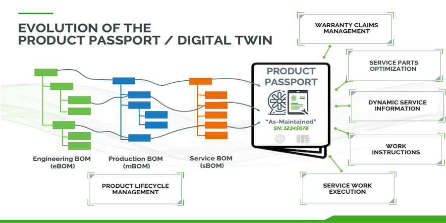 - Produktpass: Das Aufzeichnungssystem für Produkte im Feld, das die Daten aller Berührungspunkte über den Lebenszyklus des Produkts erfasst.