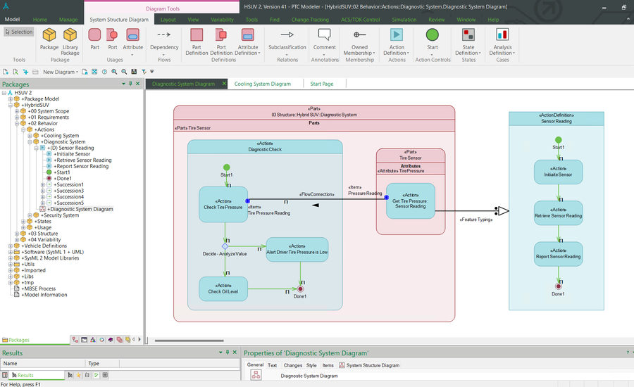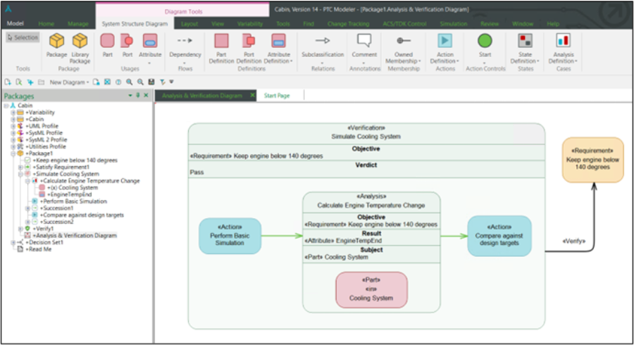 SysML 2.0 capabilities will be released incrementally over multiple versions of PTC Modeler, beginning with version 10.0. The main functional areas that are delivered with PTC Modeler 10.2 include State, Analysis and Verification modeling. These capabilities enable you to design state-based behavior for a system, define the analysis activities that are required to assess the system’s behavior and create verification elements that represent the testing and analysis steps required. The state, analysis and verification elements can all be connected to the system requirements and architecture designs to provide integrated structure and behavior analysis and testing, driven by requirements.