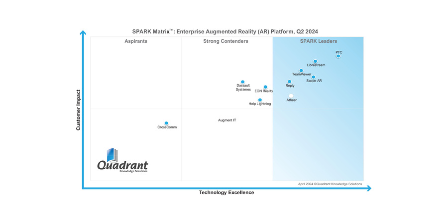 We are thrilled that PTC has been positioned as the Outright Leader in Quadrant’s 2024 SPARK Matrix for Enterprise Augmented Reality Assessment.