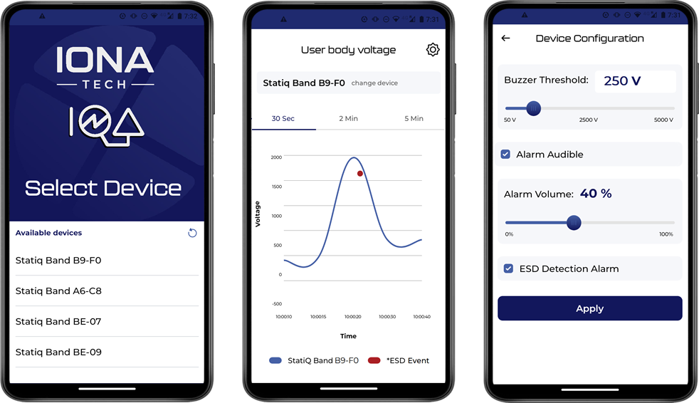Audits: A company reduces its dependence on ESD audits with confidence. “There are only a handful of people throughout the U.S. that can carry out ESD audits,” says Stevenson. “The StatIQ Band provides insights that normally require a visit from an ESD expert. It doesn’t replace the auditor entirely, but it can provide reassurance between visits and even reduce the number of needed audits.”