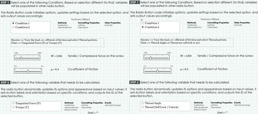 In modern engineering calculations and design workflows, user interface elements play a crucial role in ensuring efficiency, accuracy, and ease of use. One such versatile element is the radio button, which allows users to select one option from a predefined set. This section delves into the application of radio buttons within a Mathcad Prime worksheet, illustrating their uses, benefits, and functionalities through a practical scenario.