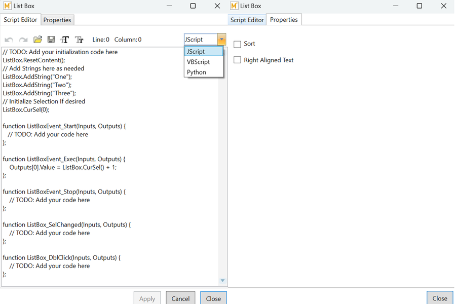Default Script of List Box