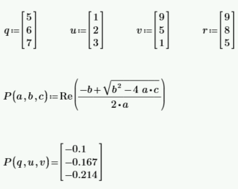 The outcome is a complex vector of function values, showcasing Mathcad Prime's proficiency in handling complex equations over vectors.