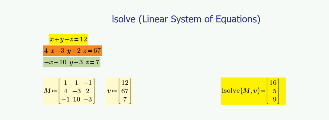 Watch this video for more examples about using the Solve Block to solve systems of equations, as well as lsolve: