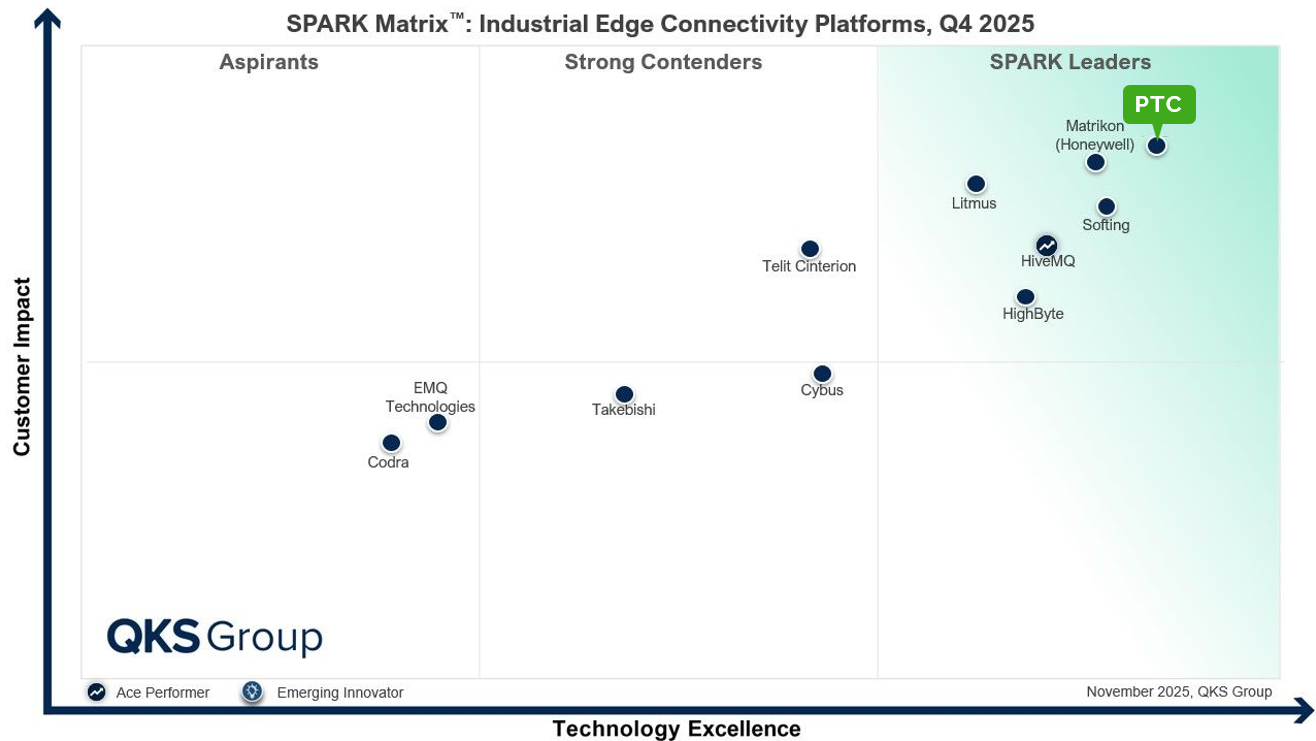 PTC is proud to announce that its Kepware portfolio of industrial connectivity has been named the Outright Leader in the latest QKS Group SPARK Matrix™ Industrial Edge Connectivity Report
