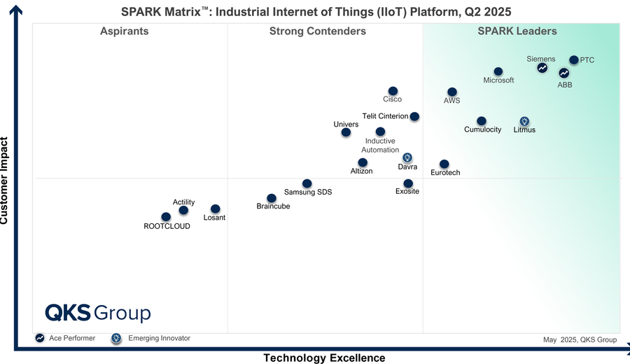 We are thrilled to announce that PTC was named the Outright Leading Industrial IoT Platform in the 2025 QKS SPARK Matrix report.