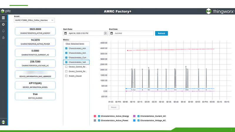 ThingWorx dashboards demonstrating Factory+ framework implemented at AMRC