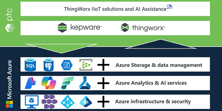 PTC’s ThingWorx and Microsoft Azure empower organizations to excel in end-to-end industrial data management, seamlessly bridging the gap from data acquisition to actionable insights. By combining PTC’s Kepware for robust device connectivity, the ThingWorx IIoT platform for real-time data contextualization, visualization, and AI built on top of Microsoft Azure’s scalable cloud infrastructure, businesses can accelerate their digital transformation within a unified, high-performance ecosystem.