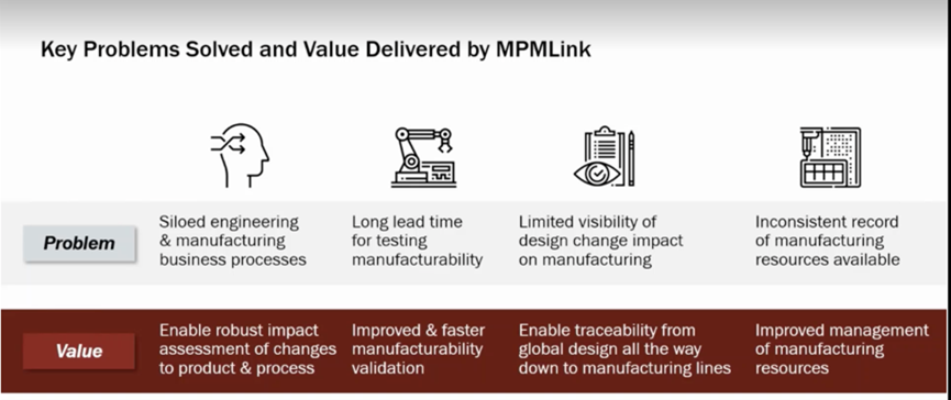 While organizations may vary greatly, especially across industries, many of them face similar problems and can get comparable value added from implementing a MPM system. By connecting manufacturing and engineering business processes in a single system, manufacturers can be sure that their most up to date product specifications and work instructions are being followed on the shop floor. In addition to bridging this common communication gap, we can further empower stakeholders to fully assess the impact of a design or manufacturing change on a process or product, respectively.