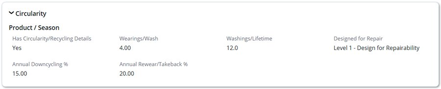 Many companies use PLM as the primary source of truth for circularity details with the most common attributes added in PLM focusing on product usage (e.g., wearings per wash) and end-of-life details (e.g., takeback programs or downcycling efforts). If these details originate in a PEF or LCA instead, it is easy to bring them in through an integration.