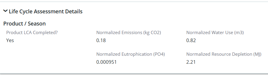 It is easy to bring the outputs of a PEF or LCA tool through a simple integration, including normalized emissions, water use, eutrophication, and resource depletion.