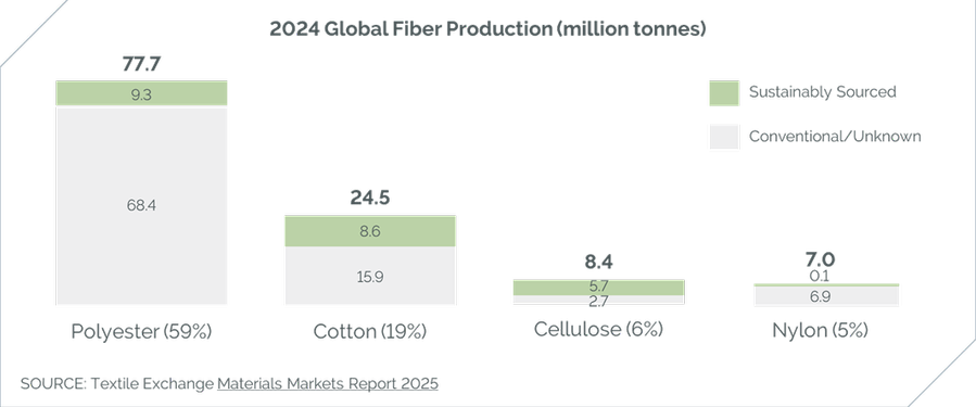Last month the Textile Exchange released its Materials Markets Report 2025, its annual health checkup on global material production. Each year, this report focuses on what materials are made, where they come from, and their environmental impact.
