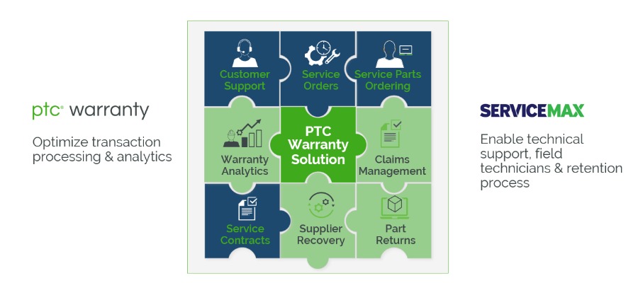 Now coupled with ServiceMax, the award-winning field service management solution, PTC is extending the value of warranty process and data to remote customer support teams and onsite field service engineers to support improved customer experience, product quality, and service operations.
