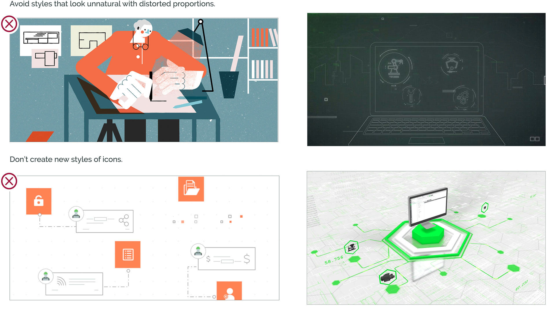 Animation styles should be consistent with PTC’s visual branding. It should look modern and professional. Often, it appears with hard-edged elements to impart an industrial and technological feel. Follow still imagery requirements in animation as well, such as using only PTC iconography