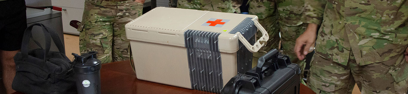 “What we should compare it to is what the medics are carrying right now,” says mechanical engineer Tim Gust. “They’ll try to bring along these hospital refrigerators that are not really mobile devices. They have heavy batteries that come with them so they can be moved down the hall, but they weren’t meant to go out in a C-130 Hercules aircraft. They’re not designed to be out in a tent in the desert—and certainly, they’re not single-person carriable,” he adds. “So we’ve developed one of the smallest refrigeration systems in the world.”