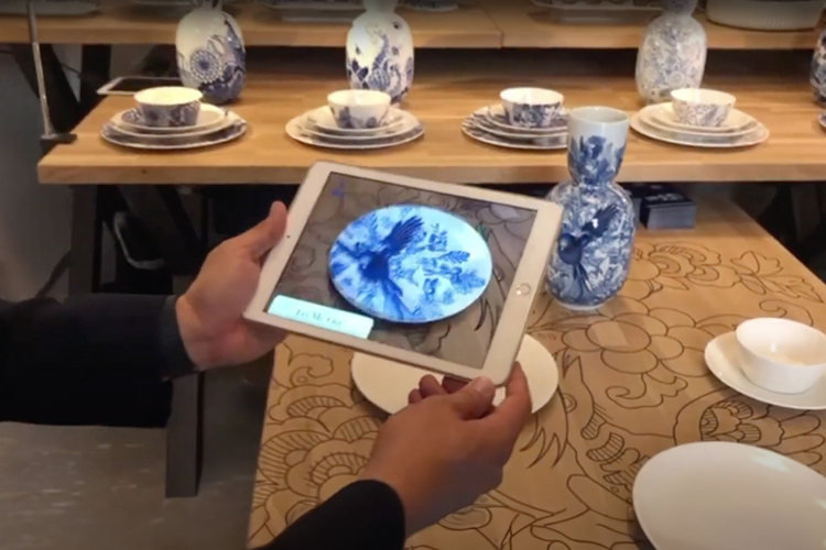 The result was the Augmented Blueware application. This app takes a unique hand-painted design on a vase and applies it as decoration on top of tableware, creating a truly unique personalized product.