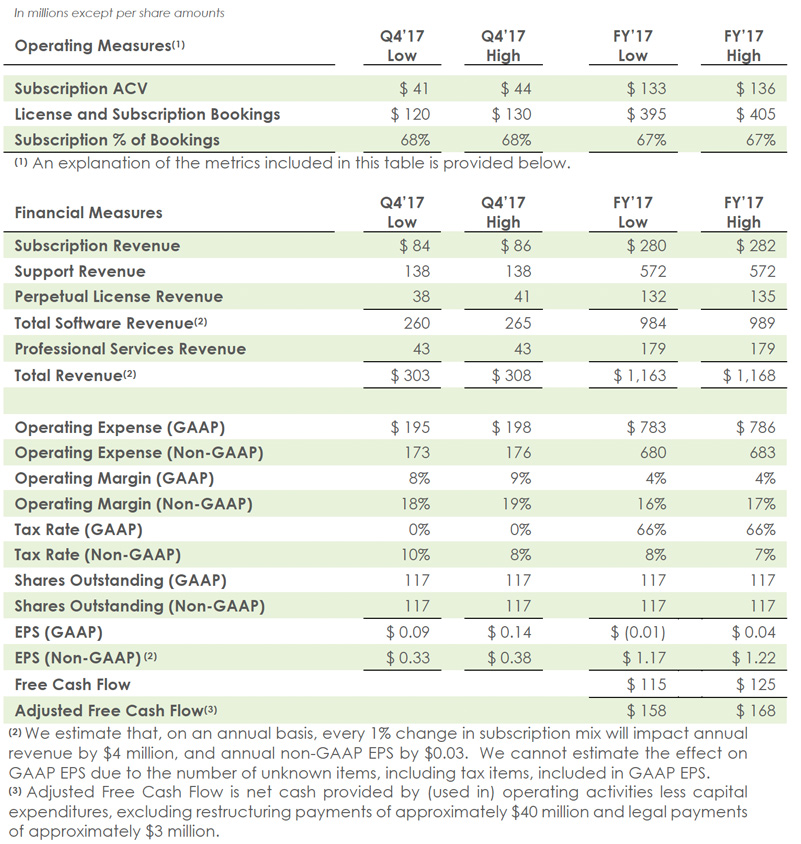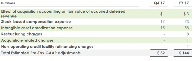 The fourth quarter and fiscal 2017 non-GAAP operating margin and non-GAAP EPS guidance exclude the estimated items outlined in the table below, as well as any tax effects and discrete tax items (which are not known or reflected).