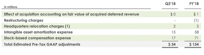 The third quarter and fiscal 2018 non-GAAP operating margin and non-GAAP EPS guidance exclude the estimated items outlined in the table below, as well as any tax effects and discrete tax items (which are not known nor reflected).
