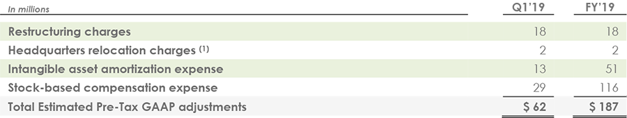 The first quarter and fiscal 2019 non-GAAP operating margin and non-GAAP EPS guidance exclude the estimated items outlined in the table below, as well as any tax effects and discrete tax items (which are not known nor reflected). Adjusted free cash flow excludes $18 million of restructuring payments related to our workforce realignment plans.