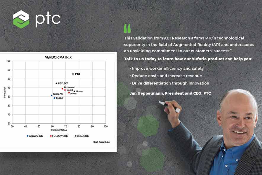 PTC's Vuforia Augmented Reality Solution Suite named a Leader in Enterprise AR Platforms by ABI Research.
