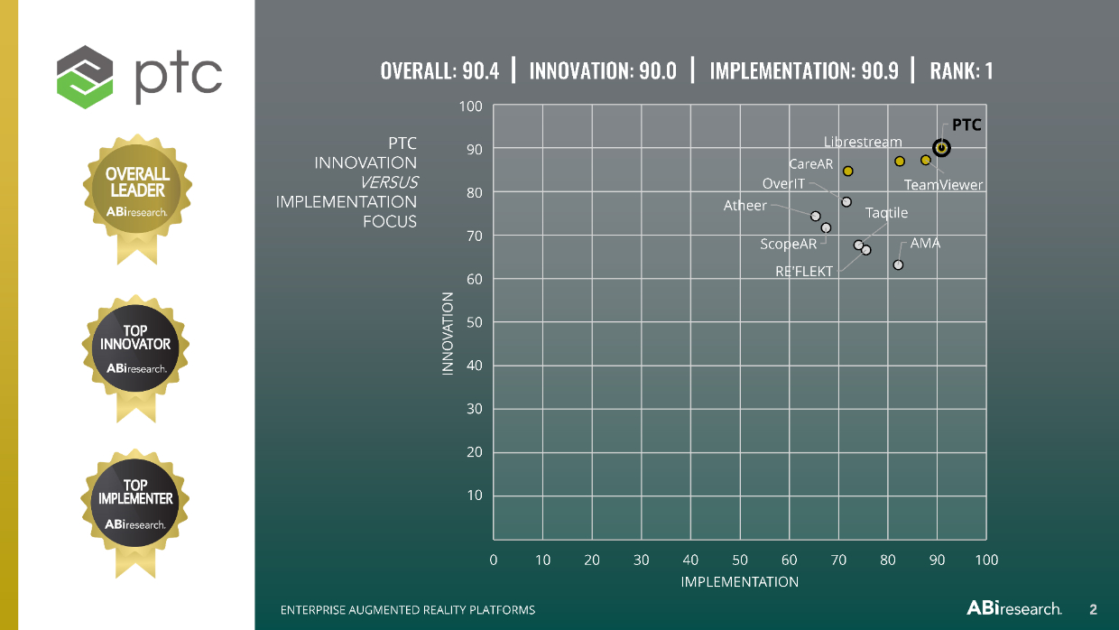 PTC Named Overall Leader in Enterprise Augmented Reality Platforms Assessment from ABI Research
