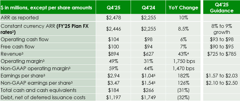 - We provide ARR guidance on a constant currency basis, using our FY’26 Plan foreign exchange rates (rates as of September 30, 2025) for all periods.