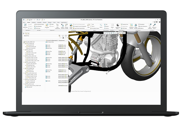 - Reduce process errors and engineering rework by directly reusing available 3D models from Creo and individual bill-of-materials (BOM) from Windchill;