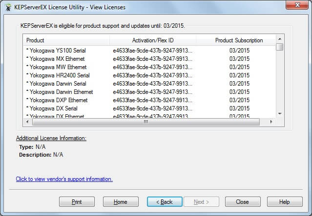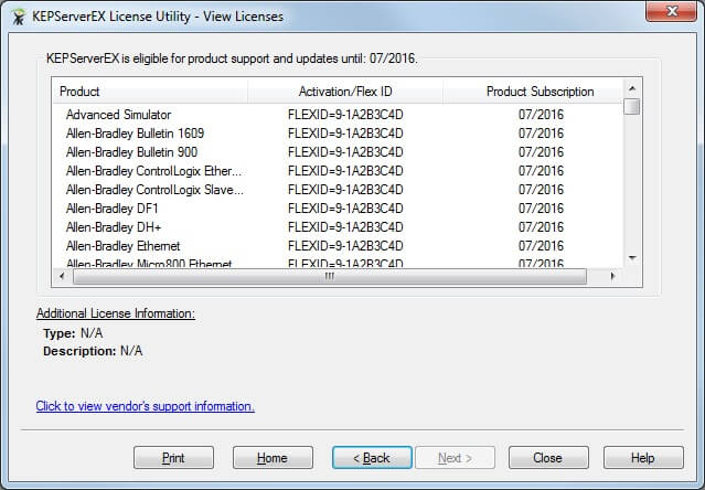 - The Support and Maintenance field which is equal to the "Support End Date" in the Kepware Server License Utility