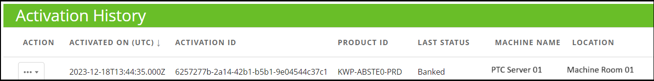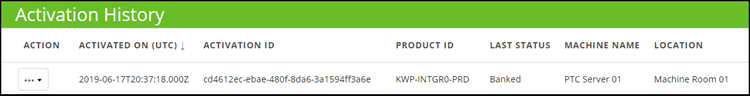- To verify the License has been successfully returned, click the "View My Activation History" link on the home page of the My Kepware portal and locate the Activation ID you just returned. It will now show as "Banked" in the "Last Status" column.