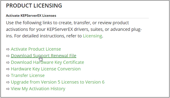 Please see the Support Renewal Process drop-down in the Kepware Server V6 section below.