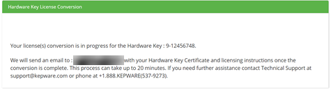 A Hardware Key Certificate file will be emailed to the email associated with your My Kepware account.