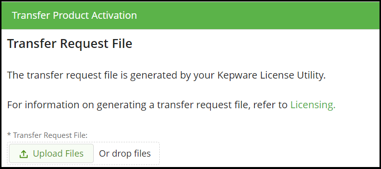- Go to My Kepware and transfer the product by uploading the transfer request file.