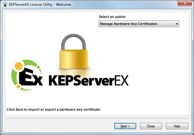 Hardware keys are used in conjunction with digitally-signed files generated by Kepware that contain a unique Hardware Key ID (Flex ID) in addition to a list of activated products. Each hardware key certificate can be imported to many host machines, but the physical hardware key that is associated with the hardware key certificate can only be attached to one machine at a time. The physical hardware key is necessary in order to use the hardware key certificate.