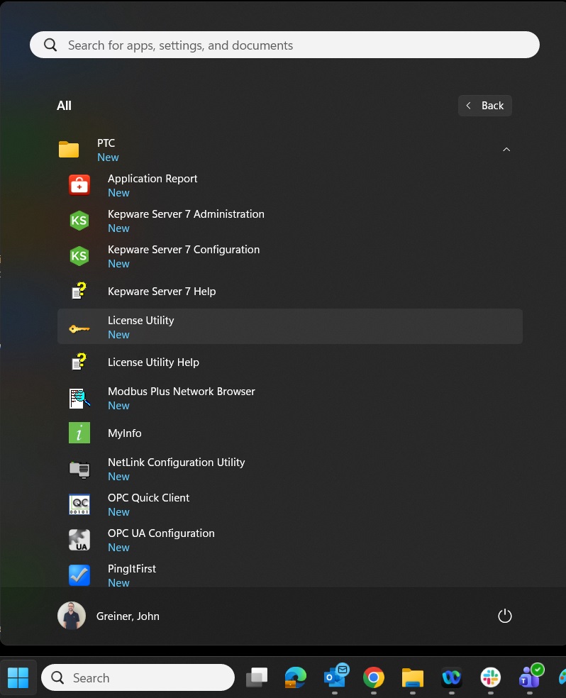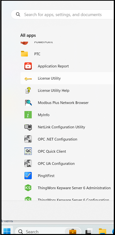 - Or: Start Menu\All Apps\PTC\License Utility.