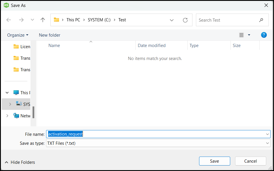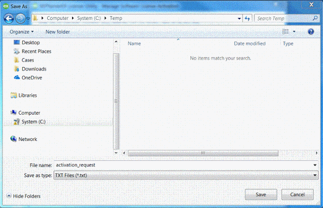 Note: The default filename for the activation request file is “activation_request.txt”. Users can rename the file to ease license management, which may be especially helpful when activating more than one product at one time.