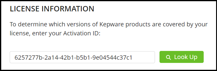 To identify the Emergency Activation ID for your license, simply logon to the My Kepware site and use the LICENSE INFORMATION tool on the home page as demonstrated below: