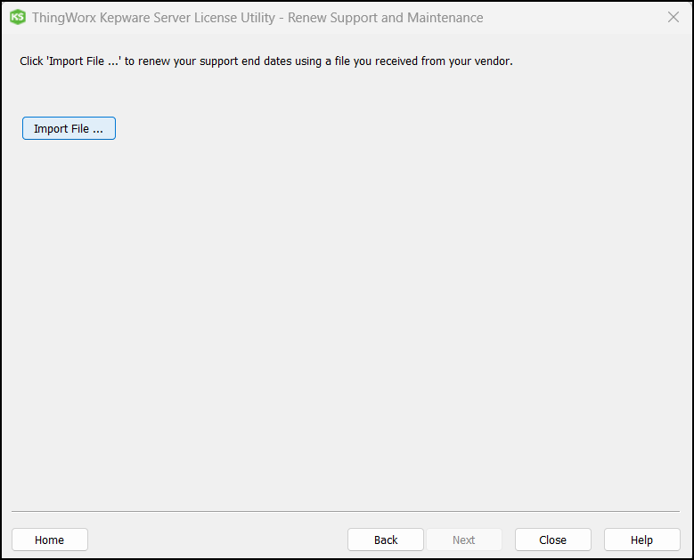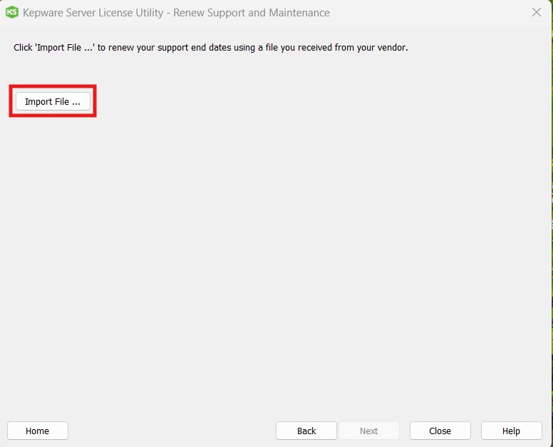 Before you start this process, copy your support renewal file to the machine hosting Kepware Server. You can download your support renewal file from your support verification email or at My Kepware.
