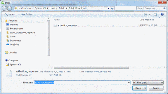 Note: The default filename for the activation response file is “response.txt.” Users can rename the file to ease license management, which may be especially helpful when activating more than one product at one time.