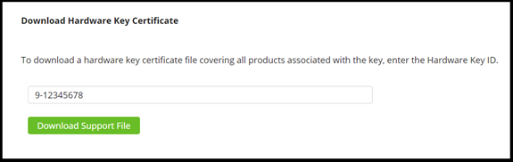 Then enter the Hardware Key ID into the text field and select Download Support File: